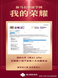 導(dǎo)師優(yōu)勢:馬來西亞研究生部資深顧問,善于挖掘申請人特點(diǎn),快速、準(zhǔn)確制定個(gè)性化留學(xué)申請方案;積累了大量的高端申請成功案例,深受學(xué)生和家長的信賴。